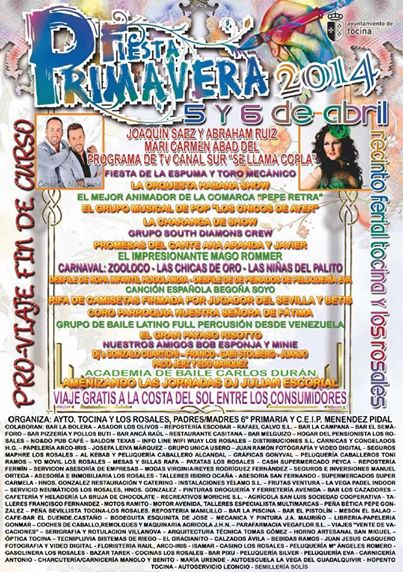 El sábado 5 de Abril a partir de las 23:00 estaremos actuando en la "Fiesta de la Primavera" en el recinto ferial tocina y los rosales.